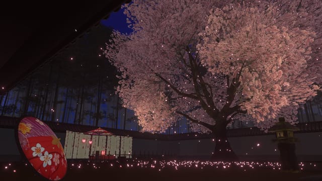 ちなみに夜バージョンもあります🌸 こっちゎ奥に雛祭りぉテーマにした日本庭園と温泉もあるょ☺️ こんな感じでお花メインのワールドぉよく作ってます🩷 みんな遊びに来てネ✨ https://vrchat.com/home/world/wrld_763fba87-a37d-44f1-8e4c-8c69a17add29/info