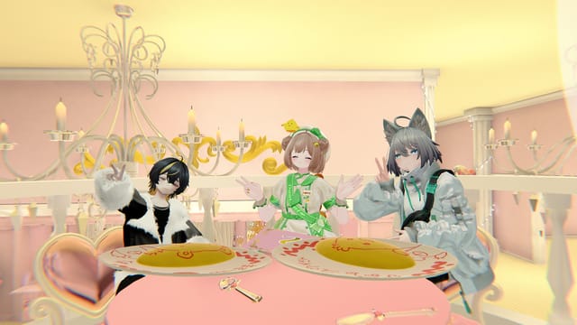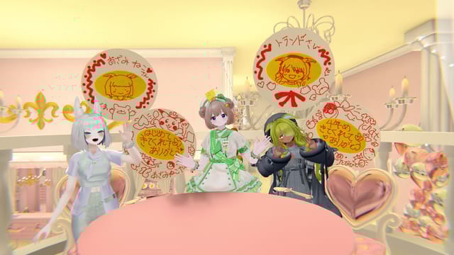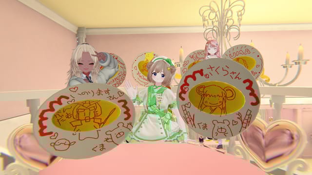今日も楽しいオムタイム〜♪ ありがとうございました(*´∇`*)ノ いつもきてくださるたびびとさんも、はじめましてのたびびとさんもみんなほっこり楽しいひとときだったねー♪ また来週〜♪ #VRCおむちゃ