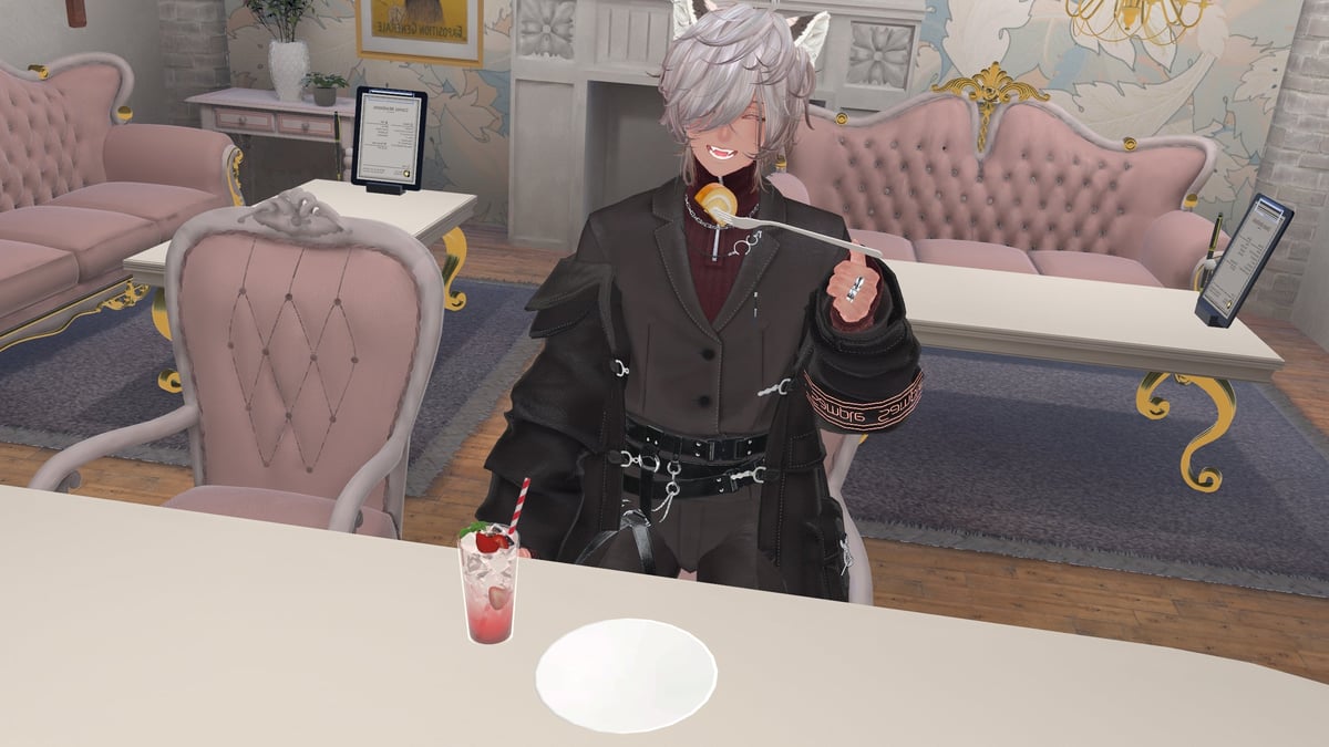 寸劇「人の目を気にする系斑霞くん」#VRC寸劇#斑霞以前にXのメインやサブで載せてた寸劇ポストです(*´ω`*) -------------------------------------- 入店前に窓から店内の雰囲気をチェックする斑霞くん いざ入店!! 🔔カランコローン 「………」 「(中に入ってみると、お店の雰囲気が一段とかっわいいー!!俺明らかに浮いてるよねー!分かるぅ~w)」 「………」 「(俺以外のお客さんいなくてよかったー。凄い肩身せまーい!他の客来る前に早く食べて早く帰りたーい)」 ~ 食って飲んで幸せタイム突入 ~ 「うっま!!!」 「逃げ帰りたい気持ちを乗り越えて注文してよかったー!ごちそうさまでした!」 「また来ます!」 「今度は友達も連れてw」黒春@たま@BS_TM